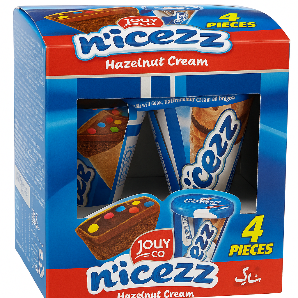 Geniet van de heerlijke smaak van Nicezz Hazelnut Cream! Deze luchtige wafelcones zijn gevuld met romige hazelnootcrème en afgewerkt met kleurrijke toppings. Een perfecte traktatie voor jong en oud, ideaal als snack of dessert.